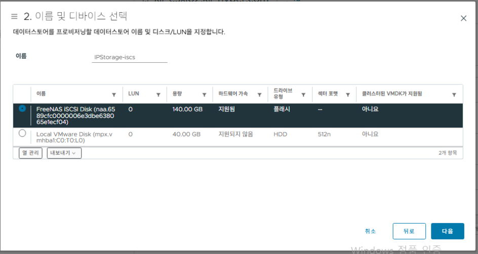 IPStorage-iscsi 선택