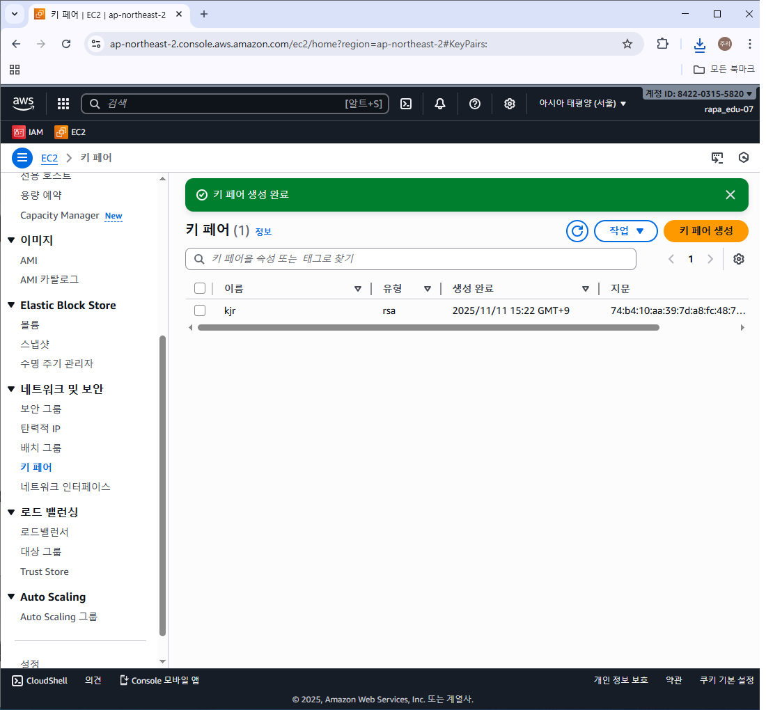 키 페어가 생성된 것을 확인할 수 있다.