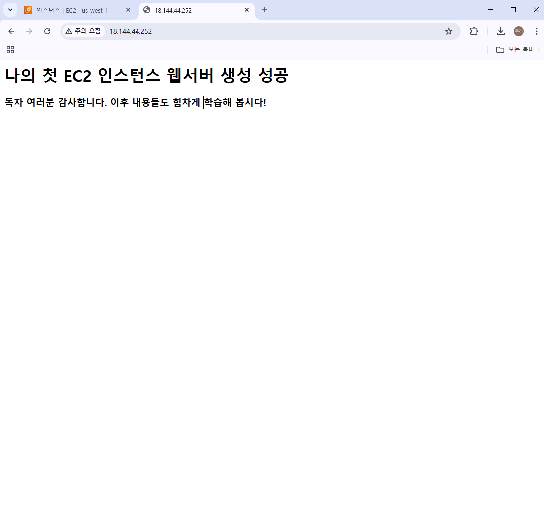 웹 브라우저에서 퍼블릭 IP 주소를 입력하여 웹 서비스에 접속할 수 있다.