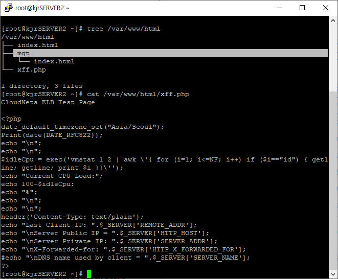 echo "<h1>ELB LAB Mgt Web Page</h1>" > /var/www/html/mgt/index.html