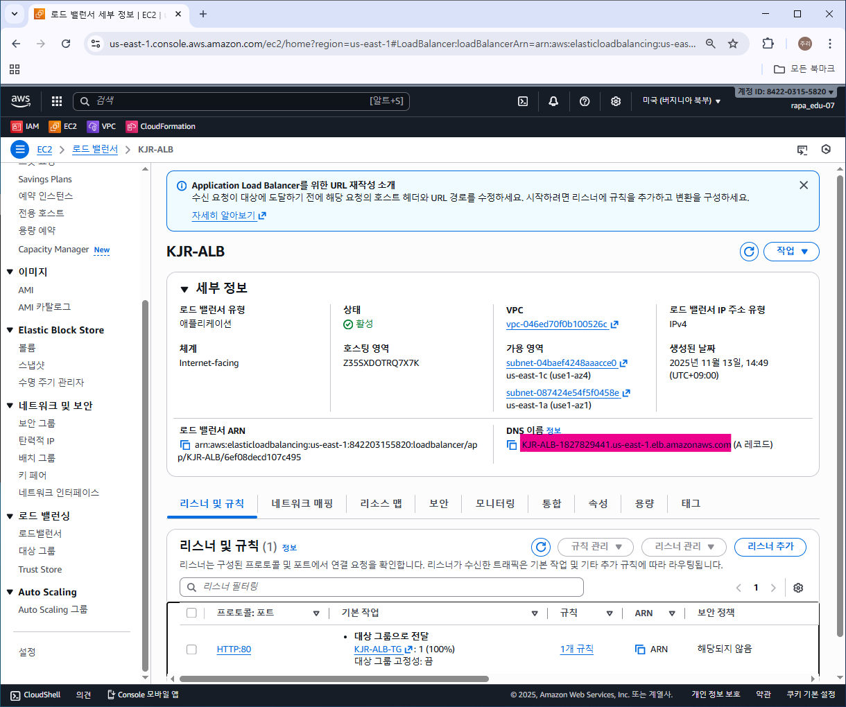 ALB 로드밸런서가 생성된 것을 확인할 수 있다.