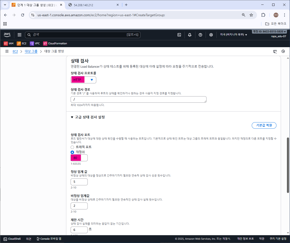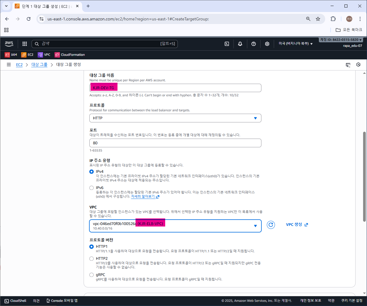 마찬가지로 대상그룹 이름과 VPC를 지정하고,