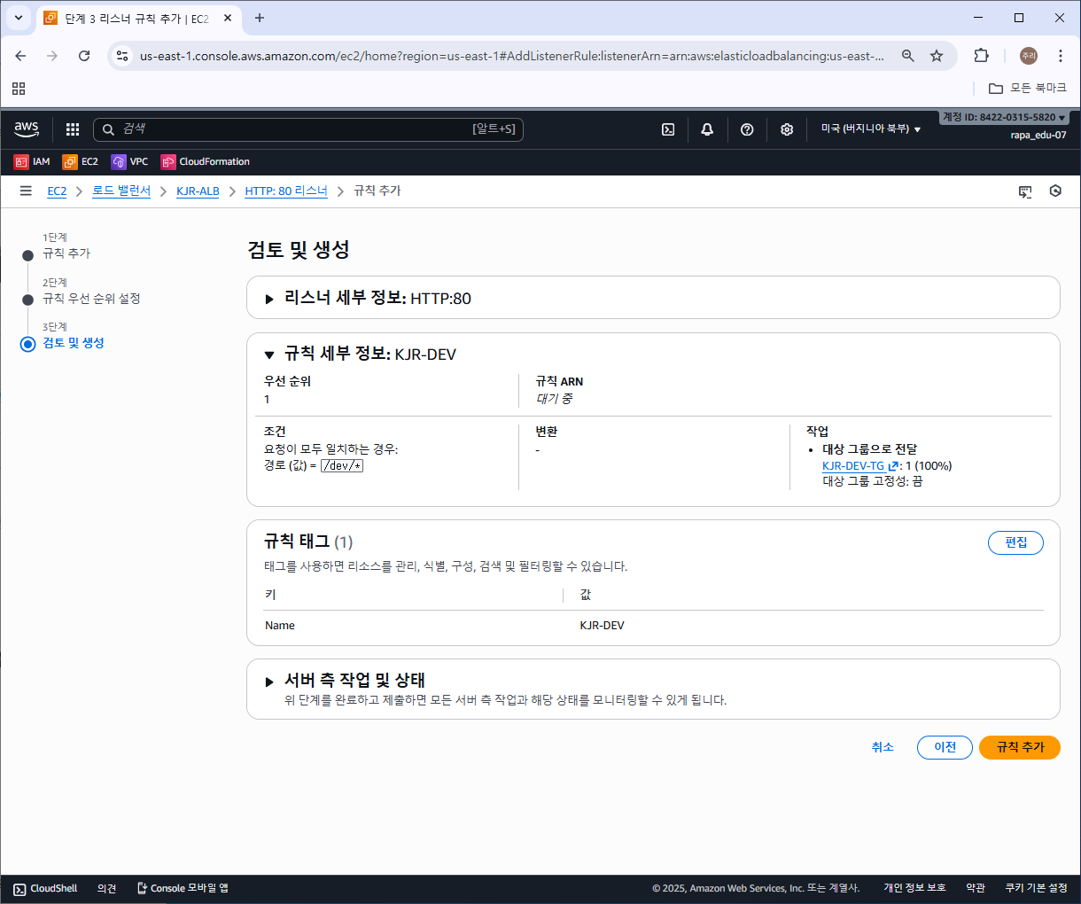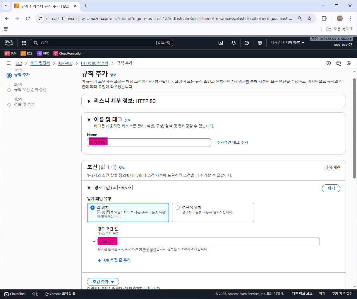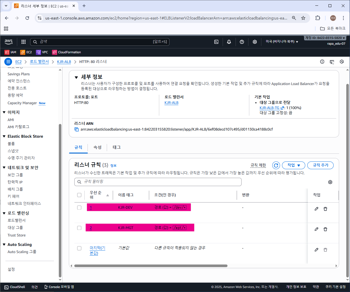 2) 경로 기반 라우팅 설정을 위한 ALB 리스너 규칙 추가