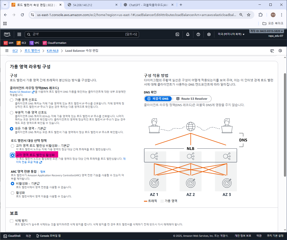 [교차 영역 로드 밸런싱 활성화] 체크하고 변경 내용을 저장한다.