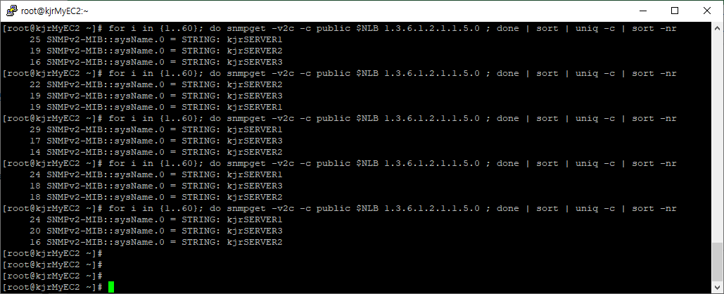 앞서 확인한 결과와 다르게 가용 영역을 교차해서 응답하는 것을 확인할 수 있다.