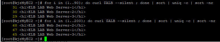 로드밸런싱은 기본적으로 라운드로빈 방식으로 동작하여 각 ALB당 동일한 트래픽을 전달한다.