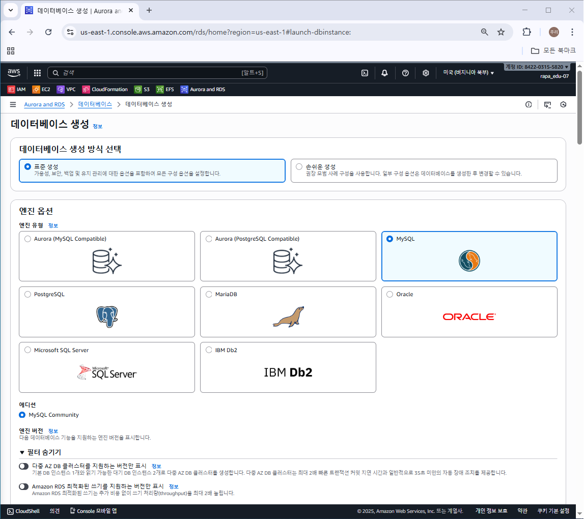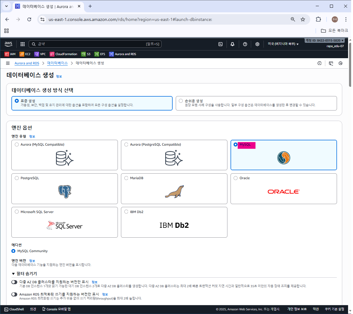 엔진 옵션 - MySQL 선택