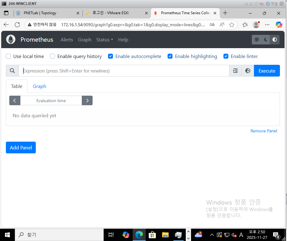 브라우저에서 172.16.1.54:9090 접속하여 정상 작동 확인..