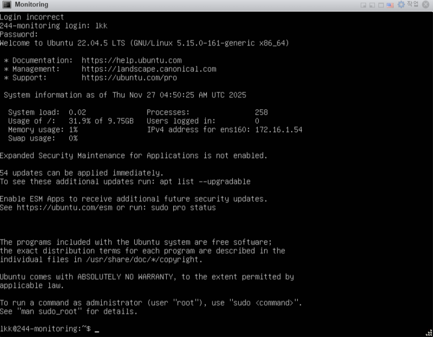 - 모니터링 서버: Ubuntu (172.16.1.54)