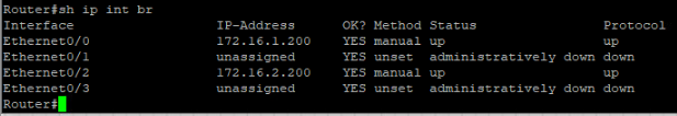 - Et0/0: 메인 활성 포트 (Internet 연결)
