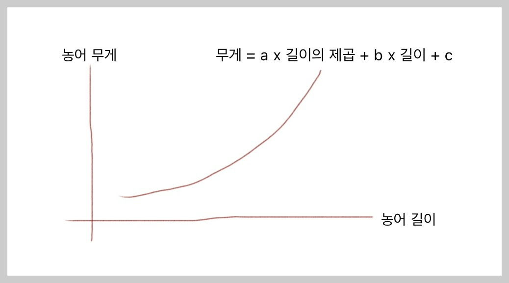 농어의 무게가 0g 이하로 내려갈 수 없는 곡선 그래프가 나왔다!