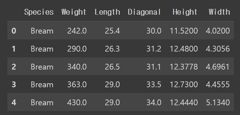 fish.head() # 처음 5개 행 출력