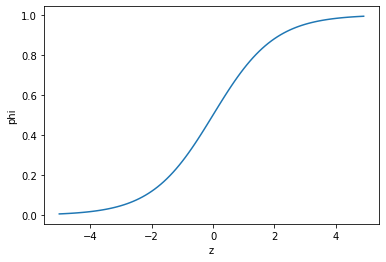 phi = 1 / (1 + np.exp(-z)) # 시그모이드 함수 계산